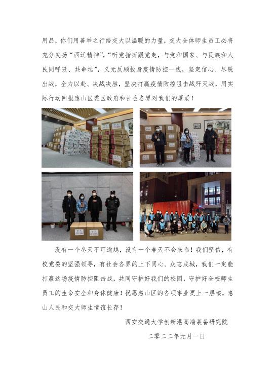 在全校师生加班加点,戮力同心战“疫”之时,无锡市惠山区委政府快速响应、紧急驰援,筹集了20万只医用口罩、2000瓶消毒凝胶、2000瓶消毒酒精等抗疫物资无偿捐赠给36365线路检测中心,这种无私奉献的义行善举,让...