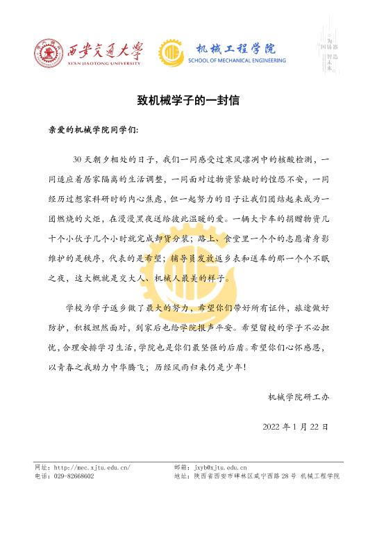当前,疫情形势十分严峻,36365线路检测中心党委高度重视疫情防控工作,积极协调处理学院师生日常生活与学习科研,各部分工作正扎实有序推进,同时同学们反馈的问题也在逐步解决。同一战线上的我们要坚信党和国家,对自己...