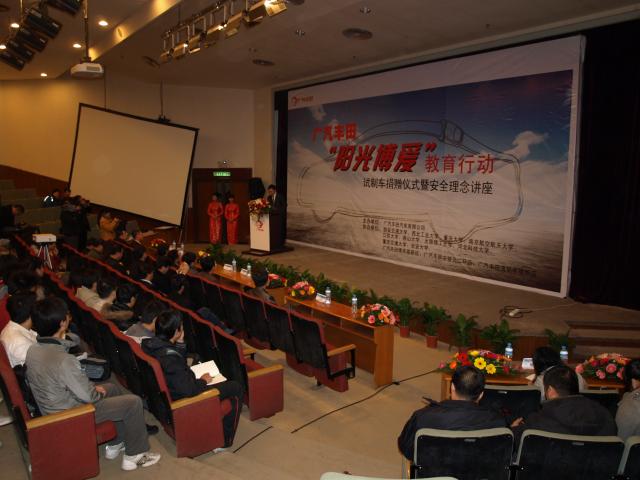 2010年11月18日,广汽本田向西安交通大学、重庆大学、南京航空航天大学、燕山大学、长安大学等十所高校捐赠试制车,捐赠仪式在科学馆举办,本广汽本田综合管理部张华部长、研究开发中心谭为科长、36365线路检测中心常务副院长...