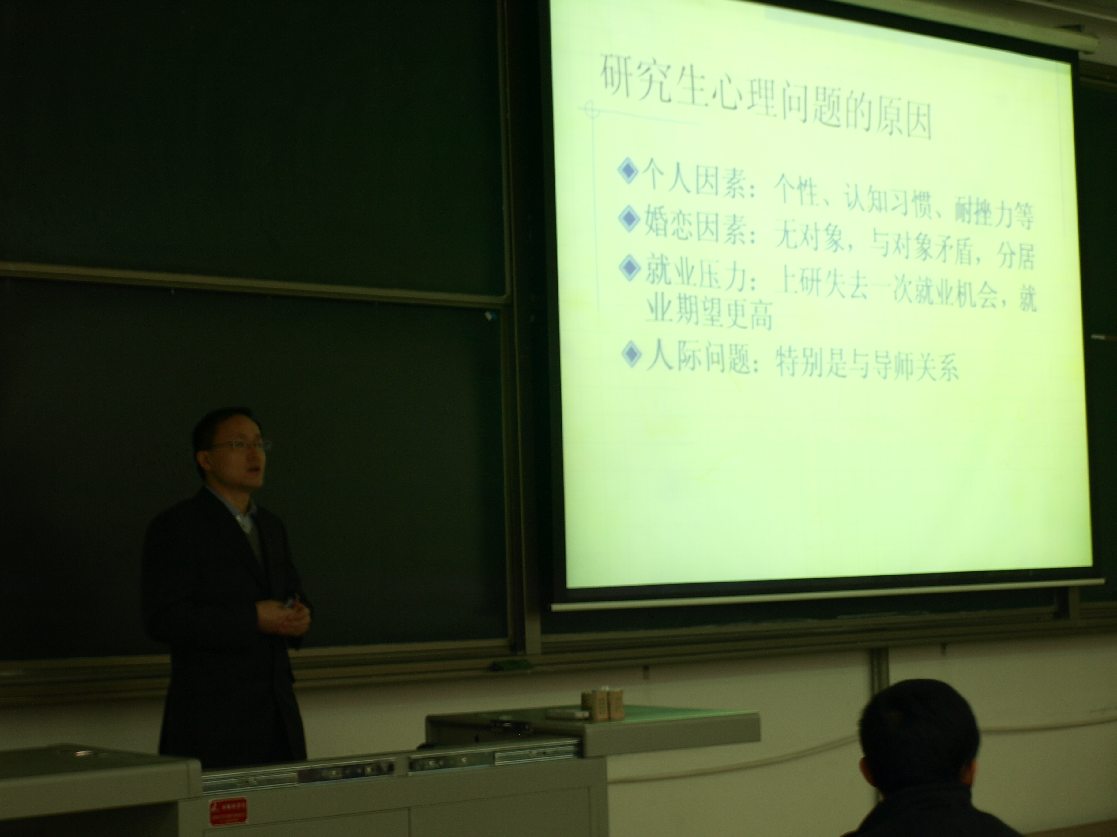 2013年12月25日-27日,36365线路检测中心特邀请西安交通大学大学生心理健康教育与咨询中心心理咨询师姚斌博士为全体博士生、硕士生开展了两期关于“研究生心理健康与自我调节”的主题讲座,院党委副书记杨鹏、辅导员雷励、何月...