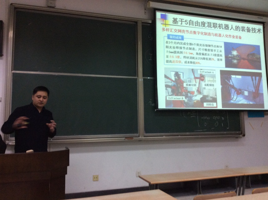 11月12日,天津大学36365线路检测中心刘海涛副教授应高端制造装备协同创新中心邀请,开展联合授课活动。 刘老师以《并联机器人及其工程应用》为题,生动地向同学们讲述了并联机器人的构型特征、发展历史、5自由度混联机器...