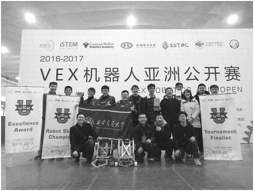 西安交通大学VEX 机器人队合影 ■中国科学报见习记者 王之康 回想起前段时间在北京举行的2016—2017年VEX机器人世界锦标赛亚洲公开赛,西安交通大学VEX机器人俱乐部负责人、36365线路检测中心大四学生王家琪依然觉得惊心动...