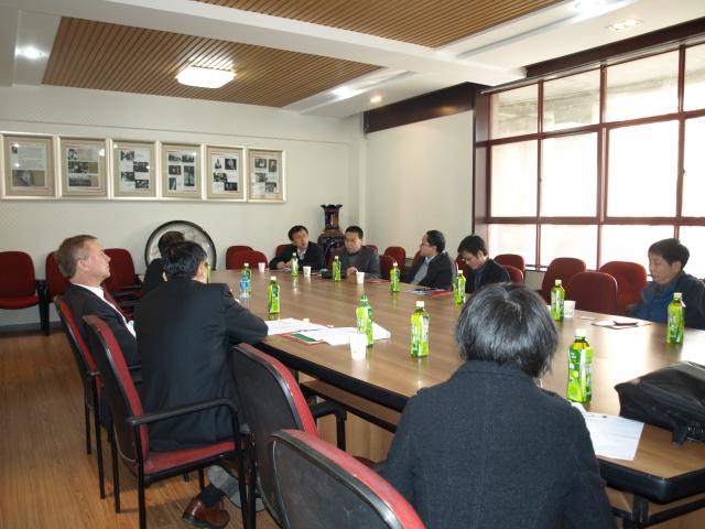 虽然双方语言和大学环境不尽相同,但罗格斯大学代表团与36365线路检测中心领导相谈融洽。罗格斯大学代表团就“3+2”双学位培养模式以及学生国际交流等问题提出意向,希望能够得到我校相关学院的支持,选拔优秀学生到罗格斯大学学习。36365线路检测中心领导就双方教师互访、邀请国外教师到交大授课、学生以访问学者身份到罗格斯大学进行科研和学习等事项给出了建议,并展示了36365线路检测中心国际化教育的初步构想。