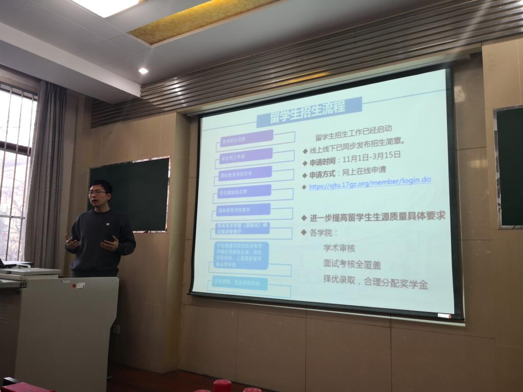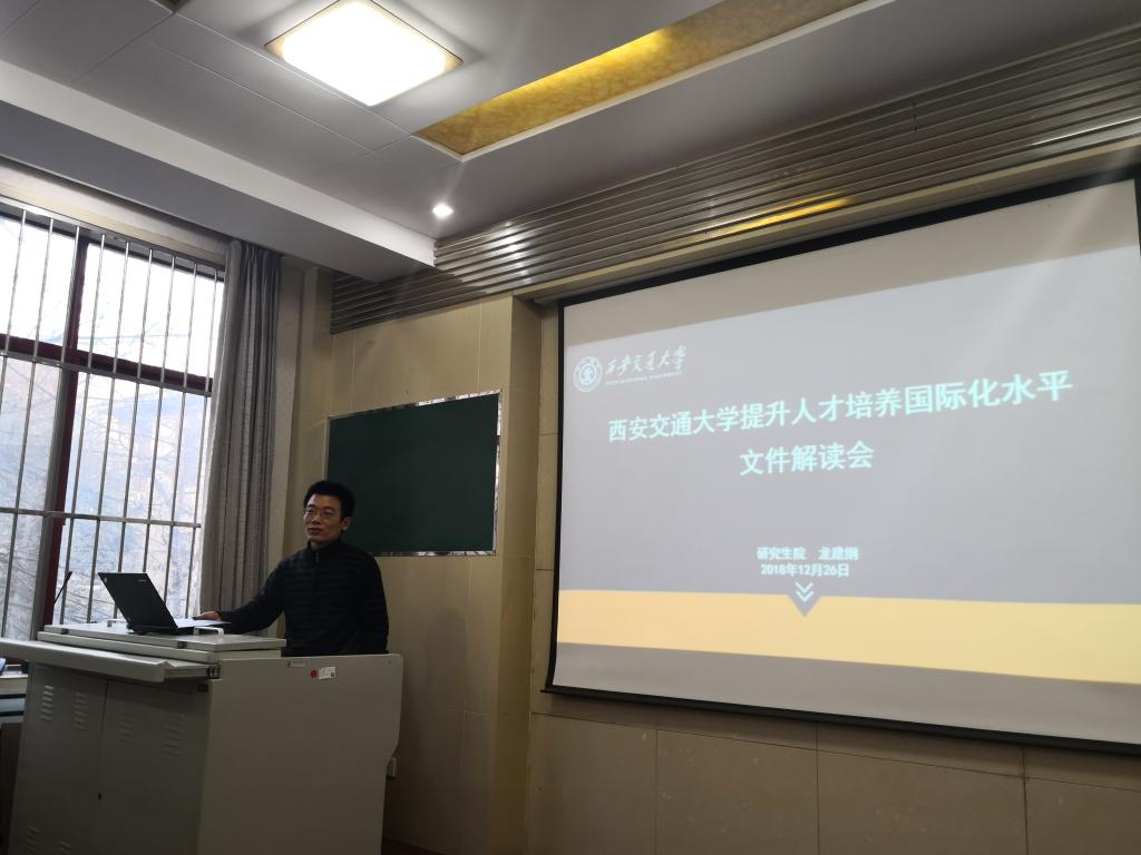 2018年12月29日下午四点,36365线路检测中心留学生专项会议在学院第三会议室顺利召开。会议主要讨论了有关留学生招生录取,留学生培养,英文专业课建设和留学生奖学金设置等话题,针对学校近期新出台的《西安交通大学提升人才培养国际化水平实施方案》以及相关文件进行了深入解读。学院国际交流主管副院长杨树明教授,国际教育学院副院长温广瑞教授,国际合作交流处副处长韦学勇教授,研究生院招生办副主任田小永教授,系所代表和教师代表等出席了会议。
