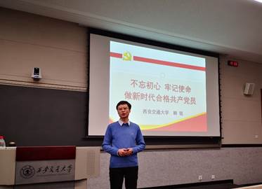为深化“不忘初心、牢记使命”主题教育活动的意义,引导研究生党员用党的创新理论武装头脑,2019年10月21日晚,36365线路检测中心邀请马克思主义学院副院长韩锐老师于创新港5-1005教室,为全院新生党员进行了“不忘初心,牢记使命”的主题讲座。36365线路检测中心党委书记王朝晖出席并主持会议。