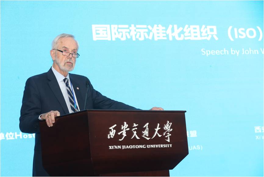 国际标准化组织(ISO)主席约翰•沃尔特先生、国际标准用户联盟(IFAN)前任主席David Felinski先生、国际电信联盟(ITU)亚太区负责人Sameer Sharma先生,中国标准化专家委员会副主任委员、原国务院参事张纲先生,国家市场监督管理总局标准创新管理司副司长李玉冰女士,陕西省市场监督管理局党组书记、局长张小宁先生,中国标准化专家委员会委员、总局原科技司司长、中国西部质量科学与技术研究院院长武津生先生,联盟理事长、中国计量大学校长宋明顺教授,西安交通大学副校长王铁军教授等200余名国内外嘉宾、联盟国内外成员单位及众多标准化工作者齐聚西安交通大学,在丝绸之路的起点以“标准助推世界互联互通”为主题,集思广益、凝聚共识,共同分享标准化教育与研究的新发展、新思路、新举措,共同探索标准化在完善全球治理、国际贸易,以及促进互联互通和可持续发展中的积极作用。
