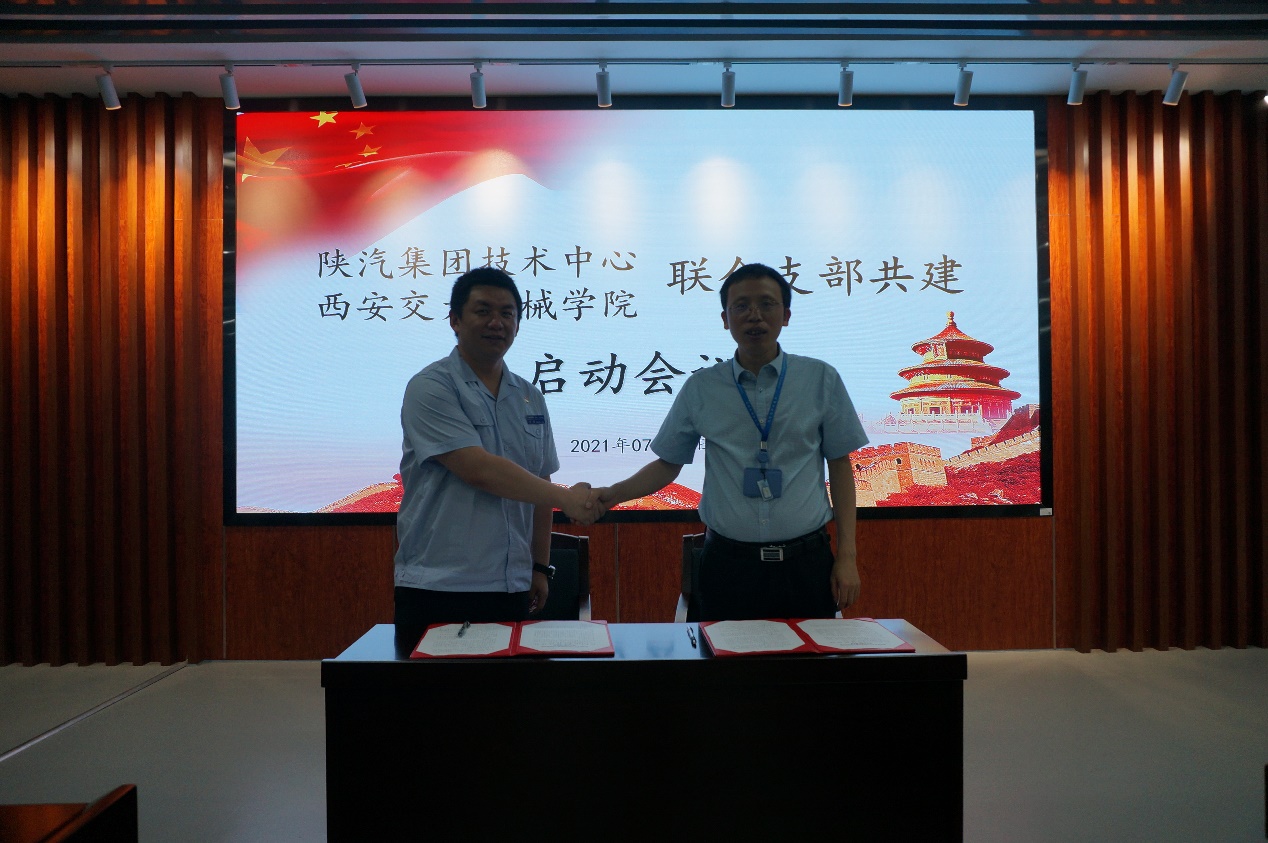 王钊主任与陈雪峰院长共同签署了陕汽集团技术中心与西安交大36365线路检测中心联合支部共建协议。科研院李小虎副处长总结发言,期望本次共建活动,由点带面,贯彻6352工程,把陕汽集团与西安交通大学的合作推向深入。