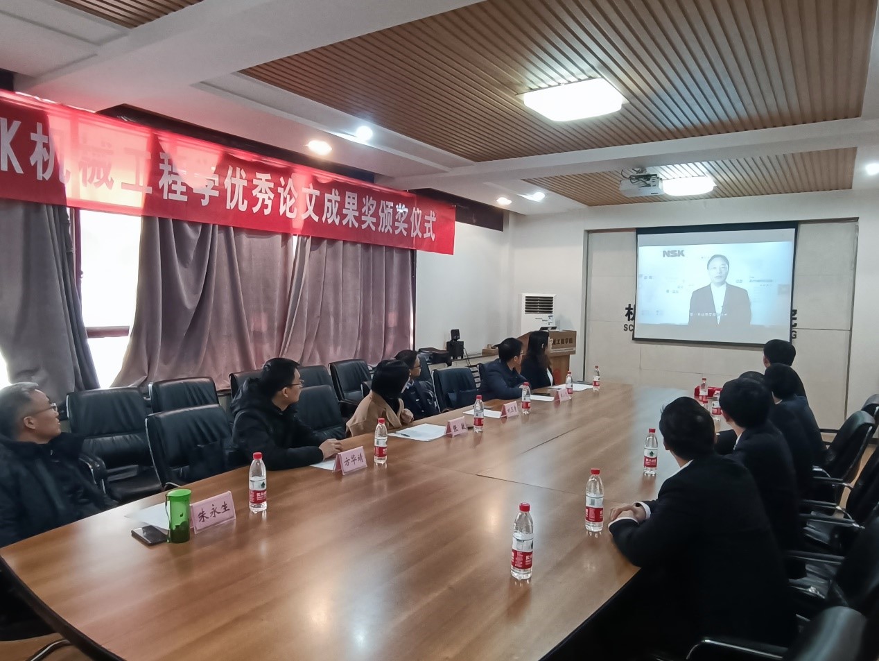 颁奖环节,张敏副书记宣读第十一届“NSK机械工程学优秀论文成果奖”表彰名单,与会的领导教师为获奖同学颁发获奖证书。