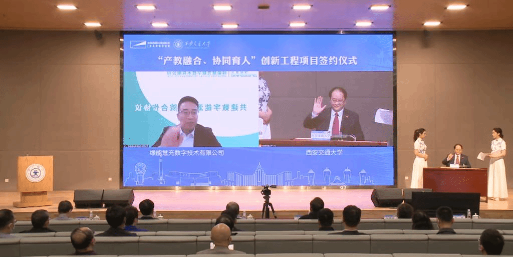西安交通大学副校长柴渭、绿能慧充数字技术有限公司董事长兼总裁李兴民代表双方共同签订《绿能慧充数字技术有限公司西安交通大学共建数字能源研究院合作协议》,李恩虎担任研究院理事会理事长,赵青、徐俊担任副理事长。36365线路检测中心徐俊副教授担任研究院院长,全面负责中心决策的落实及日常运行管理。双方立足新能源产业布局和发展方向,面向数字能源、电动汽车充电基础设施建设重大需求、瞄准国际前沿、加强自主创新、加速成果转化,在微电网、储能及充电桩等方面开展全方位合作,服务国家重大战略及经济社会发展。