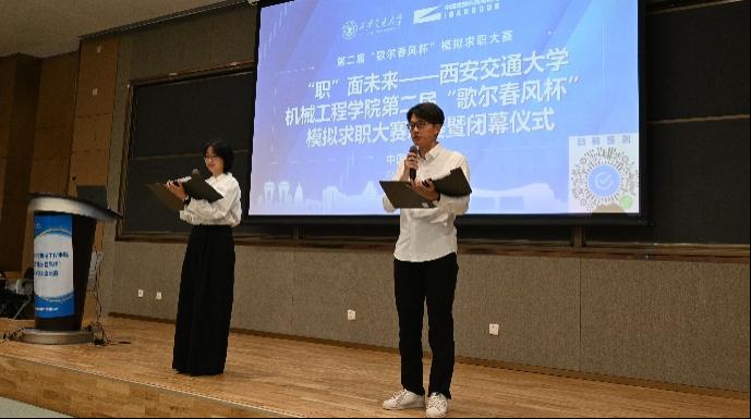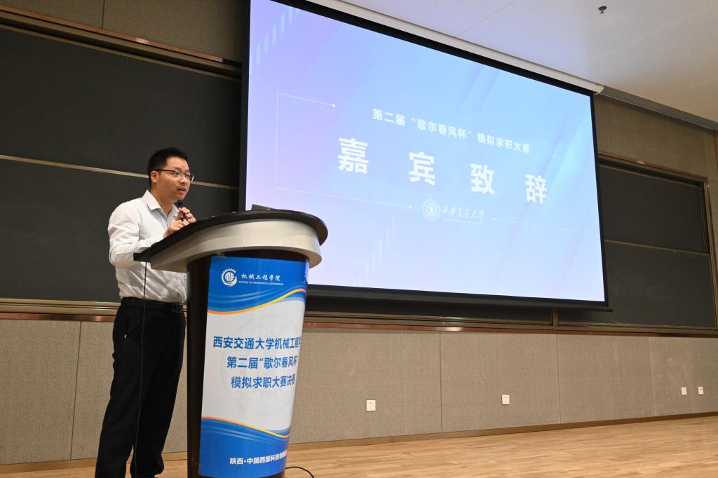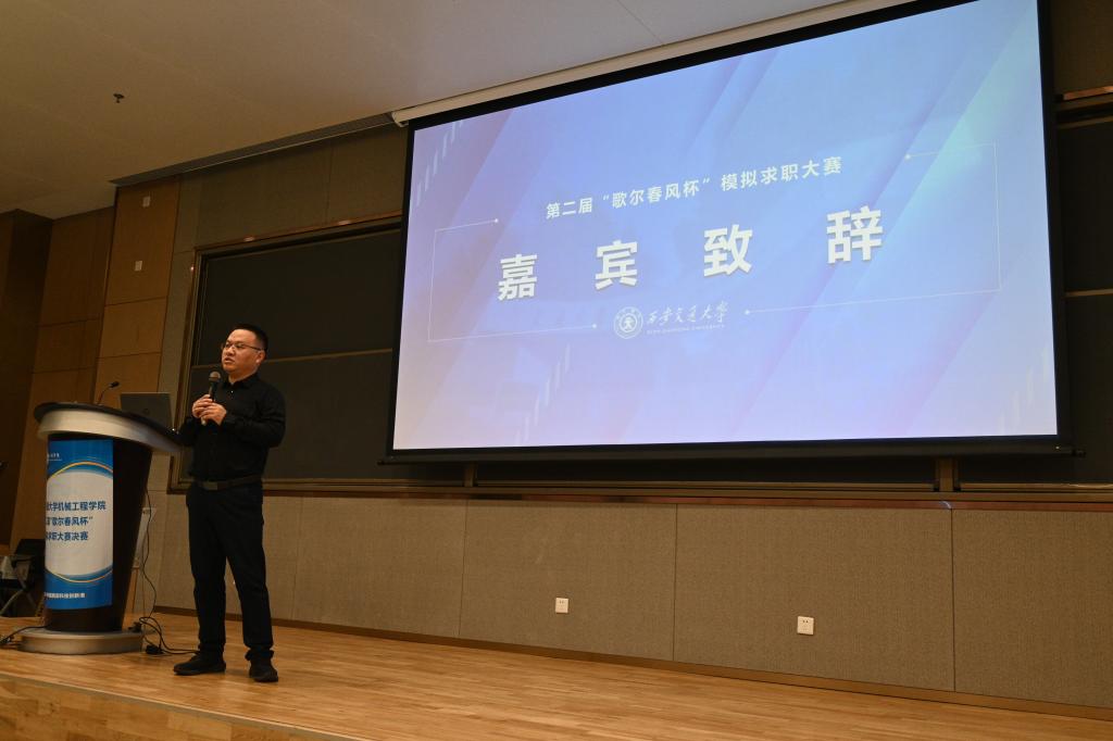 孙飞在致辞中回顾了歌尔股份有限公司与西安交通大学在校企合作方面的深厚渊源,强调了歌尔公司在行业内的领先地位,希望未来与交大继续保持合作,共同发展。包凯表示,“歌尔春风杯”模拟求职大赛不仅是一场展示与比拼的竞赛,更是一个启迪创新、促进实践、增强就业意识的宝贵平台。它既为同学们提供了展示创新精神和实践能力的机会,也为校企的交流合作搭建了重要桥梁。