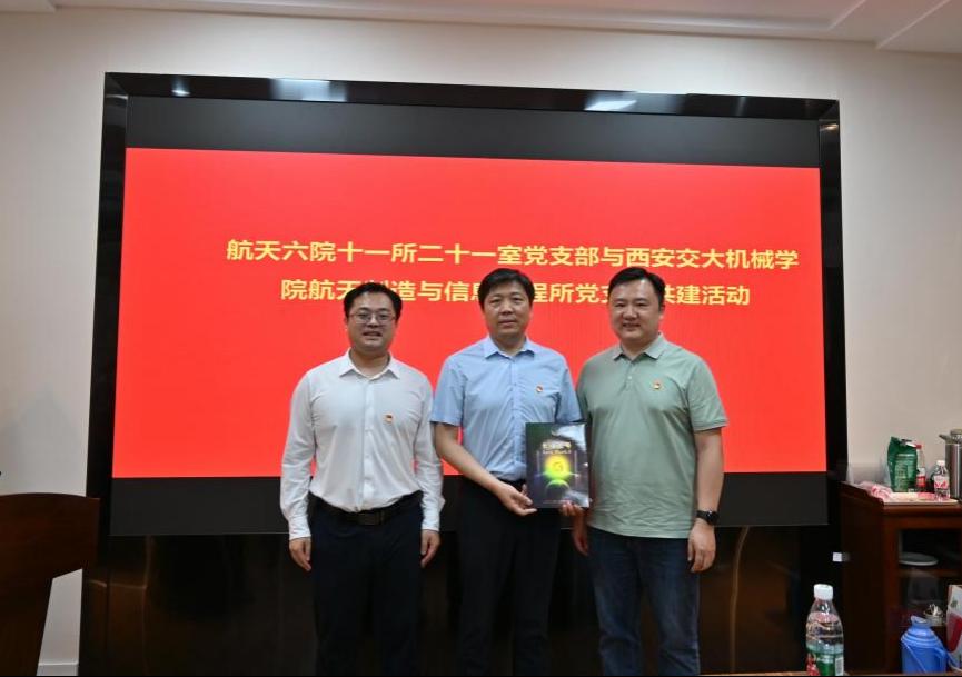 马元首先介绍了本次支部联合共建活动的背景和目的。十一所是我国液体火箭发动机设计和研制的国家队,与西安交通大学长期保持紧密合作,在产学研深度融合机制体制方面取得创新突破,双方组建的“新型涡轮火箭冲压组合动力联合创新团队”,聚焦预冷组合发动机研制,在关键技术攻关方面取得一系列创新突破。张俊斌代表学院对十一所马主任一行党员同志的到来表示热烈欢迎。他表示,西安交大机械学科有着悠久的历史和厚重的底蕴,在校院两级党委的领导下,“交大机械人”多年来坚持守正创新,在保持传统优势领域发展的同时,在航天领域持续深耕,取得了系列卓越成果,希望双方以支部共建为契机,基于联合创新团队平台进一步加深合作,加快关键核心技术攻关,为祖国的航天事业高质量发展做出应有的贡献。
