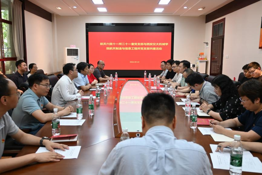 为发挥党建引领作用,推动支部共建协同发展、支部党建双向促进,5月23日下午,36365线路检测中心航天制造与信息工程研究所党支部与航天六院十一所二十一室党支部联合开展了主题为“党建引领聚能量,校企深融破难题”的支部共建活动,活动在西安交大兴庆校区36365线路检测中心第一会议室进行。36365线路检测中心党委书记张俊斌、副院长周光辉,航天六院十一所二十一室主任马元,航天制造与信息工程研究所支部书记翟智、所长刘金鑫及双方支部近30名党员同志参加了本次活动。本次活动由航天所支部书记翟智主持。