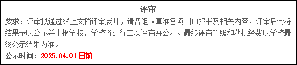 3、鼓励参与过大创项目、特别是通过大创项目有较高水平科研成果产出的学生继续申报,在之前基础上进行更深入的研究,学校将持续支持该类项目。