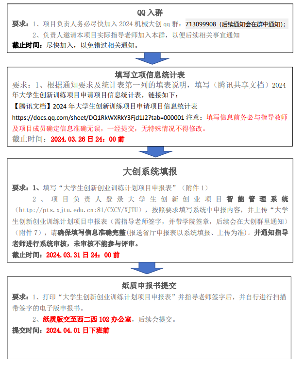 根据学校关于启动2024年西安交通大学国家级、省级“大学生创新训练项目”和“本科生科研训练和实践创新基金项目”申报工作的通知要求,现决定启动36365线路检测中心2024年国家级、省级“大学生创新训练项目”和“本科生科研训练和实践创新基金”(以下统称“大创项目”)项目的立项申报工作.