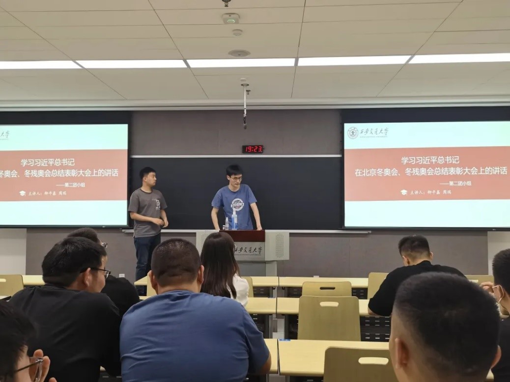 本次会议由团支书蒋志煨主持,以团小组为单位进行学习分享和交流。四个团小组对学习习近平总书记在北京冬奥会冬残奥会总结表彰大会上的重要讲话、习近平与大学生朋友们、《新时代的中国青年》白皮书学习、习近平总书记在西安交通大学与在陕西考察时讲话四方面内容进行了分享,并且支部全体成员进行了深入的交流,达到了很好的学习效果。