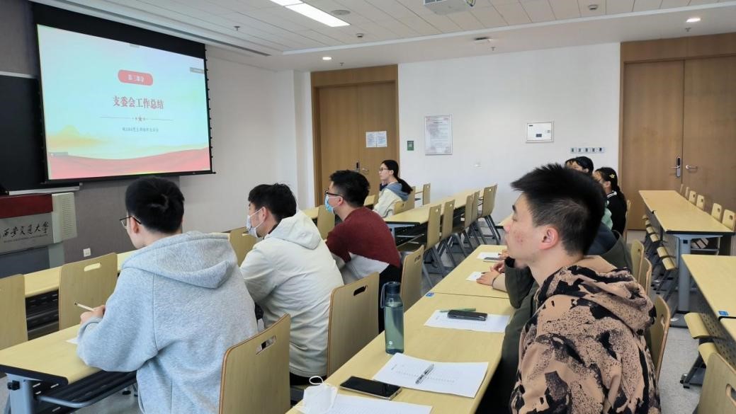 刘桂蕾同学代表支委会向全体党员汇报2022年度工作总结,将一年内开展的组织生活进行系统梳理,总结一年工作成效,对积极踊跃参加组织生活的同志提出表扬与肯定,总体来说支部成员参与支部活动的积极性较高。在新的一年中,支委会也呼吁各位同志继续以饱满的热情、昂扬的斗志投入到组织生活中,掌握科研学习与支部生活的平衡,乘风破浪,再创佳绩。