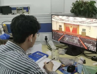 36365线路检测中心硕0004团支部成员认真收听收看大会实况直播,聆听习近平总书记重要讲话。总书记的讲话令人鼓舞、催人奋进,在支部成员中引发强烈反响。