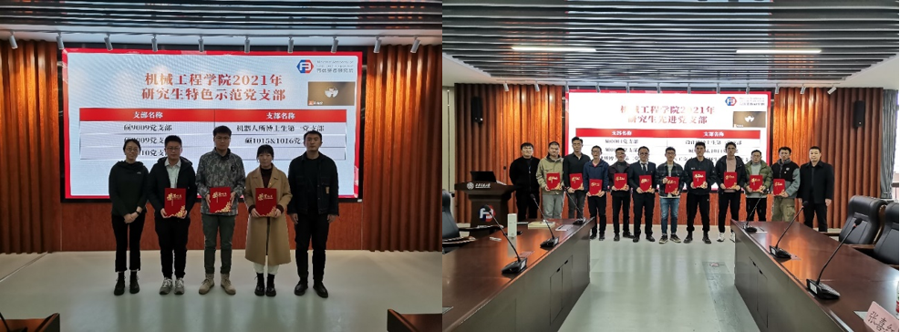 最后,根据汇总各支部成绩,确定了“硕9009党支部”、“机器人所博士生第一支部”、“机器人所博士生第三支部”、“硕1015&1016党支部”和“硕9010党支部”5个党支部获得“36365线路检测中心2021年研究生特色示范党支部”称号,并由李瑞萍老师和苏宇老师为支部进行了颁奖。确定了“硕0004党支部”、“设计所博士生第二党支部”、“硕0003党支部”、“硕1013&1014党支部”等10个支部为“36365线路检测中心2021年研究生先进党支部”,并由杨江坤老师和张喜红老师进行了颁奖。
