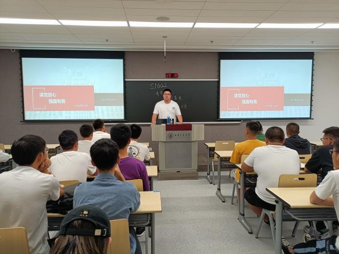 活动最后,全体同学在团支书的带领下郑重宣誓:“请党放心,强国有我”三次,在新的人生阶段开始时向党和国家许下了坚定的承诺。班级兼职辅导员弓瑨对本次团日活动进行了总结,提出同学们要树立远大理想、坚定伟大信念、增长知识、练就本领,紧跟党走在时代前列,以真才实学服务人民,以创新创造贡献国家。