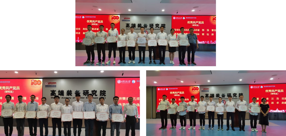 王朝晖、张敏、张新功共同为教职工优秀共产党员、研究生优秀共产党员和创新港青年先锋颁发荣誉证书。