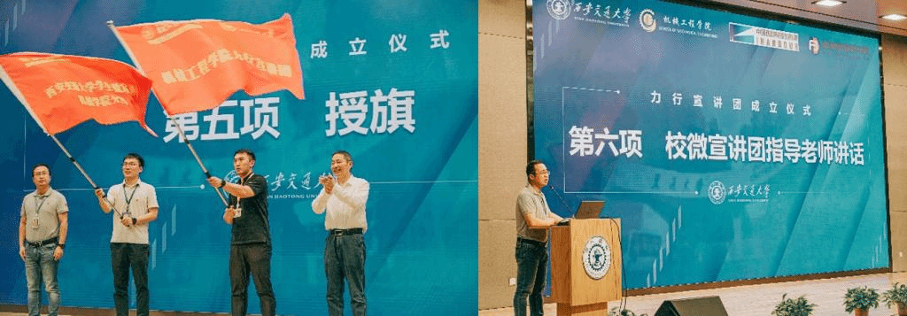 校微宣讲团指导老师陈晨强调了宣传工作对于学校思政教育及文化宣传的重要性,是学校进行“立德树人”、培养时代新人的重要载体。他肯定了成立力行宣讲团的意义,并代表校宣讲团表示支持,他嘱托力行宣讲团成员要加强理论学习和外出实践,加强与其他宣讲团的交流,把百年机械的好故事和制造强国的好故事讲出去是百年交大机械人的使命和责任。