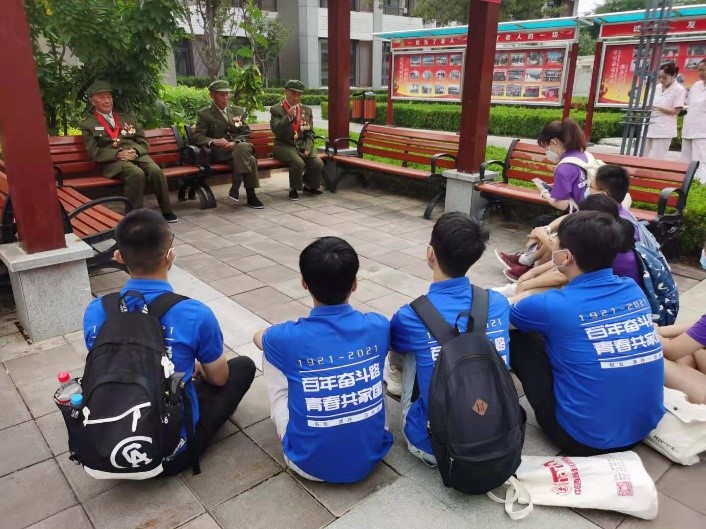 在做完讲解之后,敬老院负责人请了三位老兵为队员们讲述了他们的革命故事。老兵们绘声绘色地讲述了他们的革命经历,将一幕幕艰苦、残酷的革命场景呈现在大家面前,使队员们深刻感受到了革命的艰辛。