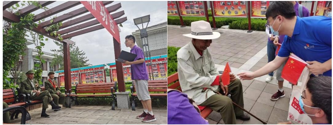 “星火燎原”实践队的成员为感恩老兵爷爷们的故事分享,为老人们带去欢乐,共同演唱了《过雪山草地》等红色歌曲,爷爷们深感温暖,并且热情合唱。南开大学恩来精神展演团的成员们为爷爷们动情展演了周恩来总理的故事和恩来精神,得到了爷爷们的肯定。表演结束后,实践队向老兵爷爷们赠送了小型五星红旗表示感谢。虽然出于防疫的考虑队员们无法与他们近距离交流,但是心灵的距离并未因此有所隔阂,交流现场欢声笑语不断。