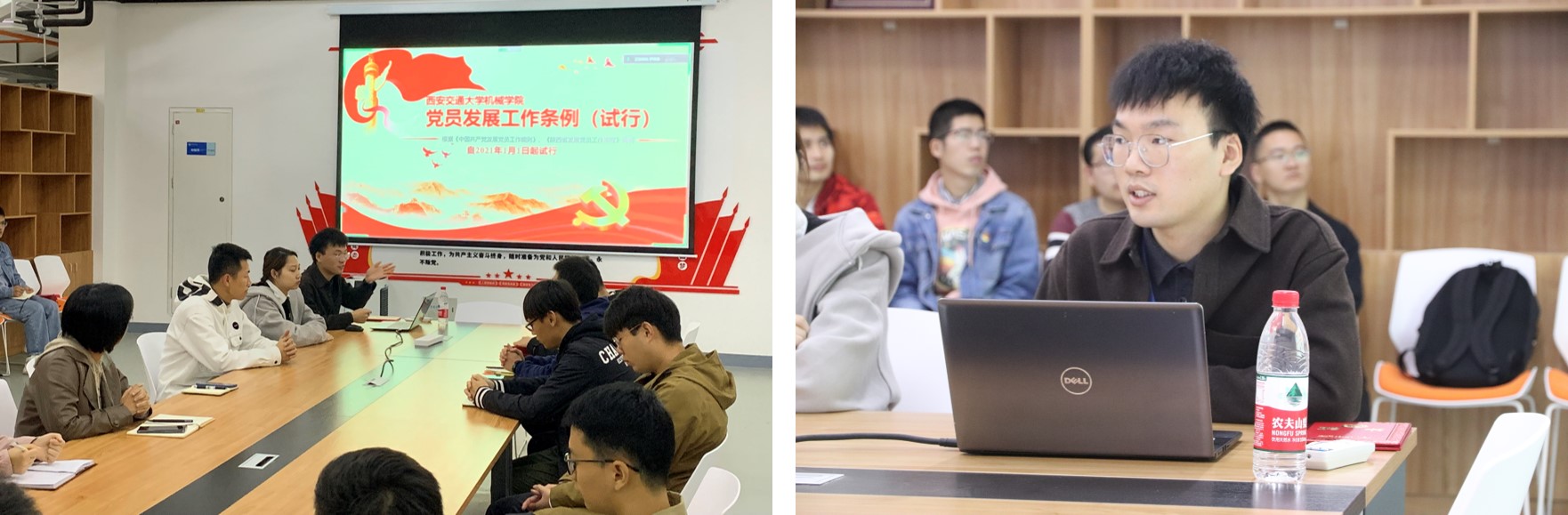 党建工作办公室主任杨江坤老师向所有党建办公室的成员进行了党员发展工作流程培训。他表示研究生党建办公室作为学院党委领导下的学生组织,需要协助分党委完成研究生基层党建工作、处理日常党建事务,并对党建办公室未来的工作提出了期待。杨江坤老师从确定积极分子、拟定发展对象、列为预备党员、预备党员转正各个的发展流程阶段进行了详细的介绍,他指出党建办的工作人员应该熟练掌握党员发展流程,保障学院研究生党员发展工作质量,做好学院研究生党建工作。