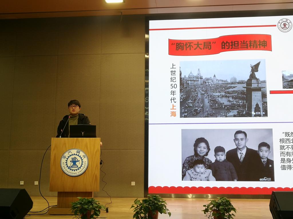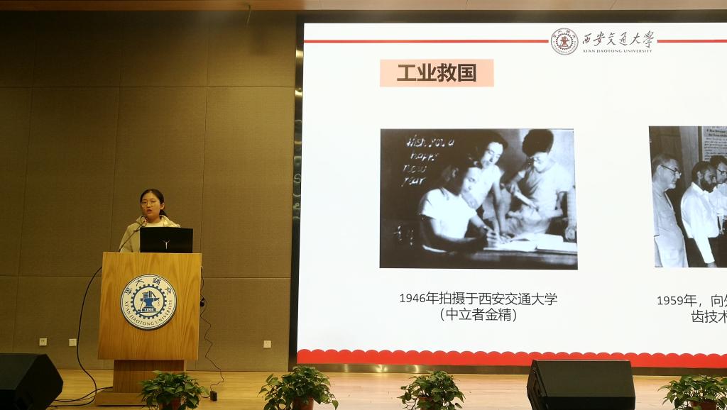 窦钰同学向大家娓娓道来金精老师和林毓锜老师的故事。从历史的印记中深化自己对西迁精神的认识,从厚重的过往中锤炼自己的时代品质。“交通大学西迁”不只是60多年前发生的事件,也是一个个人对自己未来的选择。这种“逆流而上”的行为是使命所趋、责任所系,是有利于实现国家长治久安的。最后窦钰同学鼓励大家不仅要学习他们的事迹,更要学习他们的人生态度,同时珍惜现在良好的科研环境与时代机遇,接续传承、不辱使命。