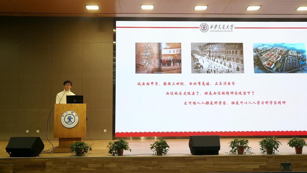 张子叶同学从交大的教授学者的角度解读西迁历史,鼓励大家从中学习西迁精神,学习科学家精神。西迁是艰难的,西迁先行者的付出是最多的,正是他们在西迁的路上的无私奉献和艰苦创业,才诞生了一路芳华的“西迁精神”。在此之后,一代代交大人赓续奋斗,使得交大这棵大树扎根西部、服务国家,硕果累累。西迁的历史远去了,但是“西迁精神”历久弥新,近年来,交大人再次向西挺进,踏上“二次西迁”的新征程,在中国西部科技创新港这片充满希望的土地上,打造助力西部发展和国家建设的新引擎。