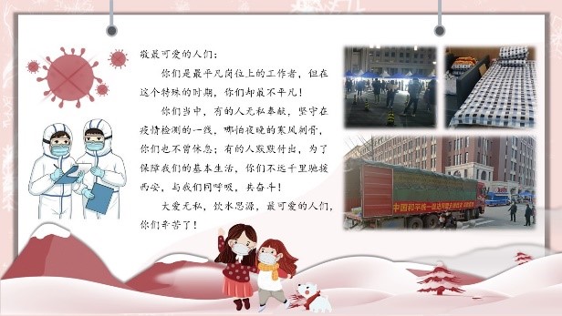中共36365线路检测中心硕1002党支部于1月6日召开线上组织生活会,围绕本次抗疫过程中同学们的亲身经历进行了分享与讨论,并且制作了电子感恩卡片,真诚地向一线工作人员说一句“辛苦”、道一声“感谢”。
