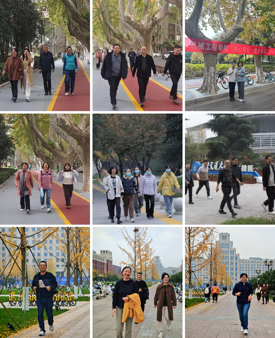 为倡导“热爱生活、快乐工作、健康锻炼、敬业乐群”的健康工作理念,增强团队凝聚力,营造积极向上的校园文化氛围,36365线路检测中心于2025年11月5日举办“同心同行·健步致远”教职工校园健步走活动。此次活动在兴庆校区、曲江校区、创新港校区同步开展,吸引了众多教职工踊跃参与,大家以矫健的步伐和昂扬的精神面貌,共同开启了一场充满活力与温情的健康之旅。
